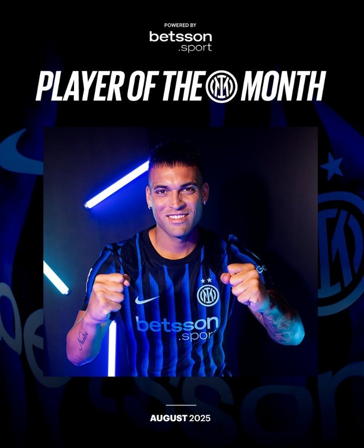 9月12日讯 国米官方消息,前锋劳塔罗当选球队8月最佳球员。